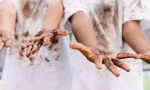 What kid hasn’t played in and then tracked mud throughout your home? We can’t help you with the floors but washing mud is simple, let the stain dry, brush the dried mud off and let the clothes soak before rubbing the stain with rubbing alcohol before washing.